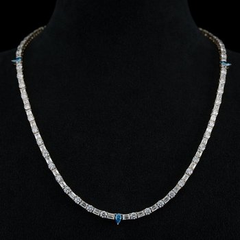 Mavi armut mozanit tenis zinciri kolye | Yuvarlak ve baget kesim | Erkekler ve kadınlar için 925 ayar gümüş takı